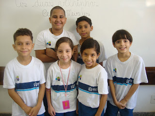 Os alunos Patrick Felipe, Kadosh, Genessy, Letícia Cristina, Juliana Henrique e Eduardo,recitaram a poesia As duas velhinhas... |